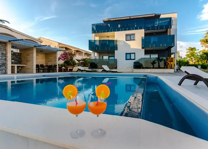Goście obiektu noclegowego mogą korzystać z urządzenia do parzenia kawy/herbaty, a także pełnowymiarowej kuchni z kuchenką mikrofalową, czajnikami elektrycznymi i lodówką. Obiekt noclegowy leży 40 km od lotniska Zadar. Obiekt noclegowy kusi również basenem do nurkowania i odkrytym basenem zapewniające maksymalny relaks.